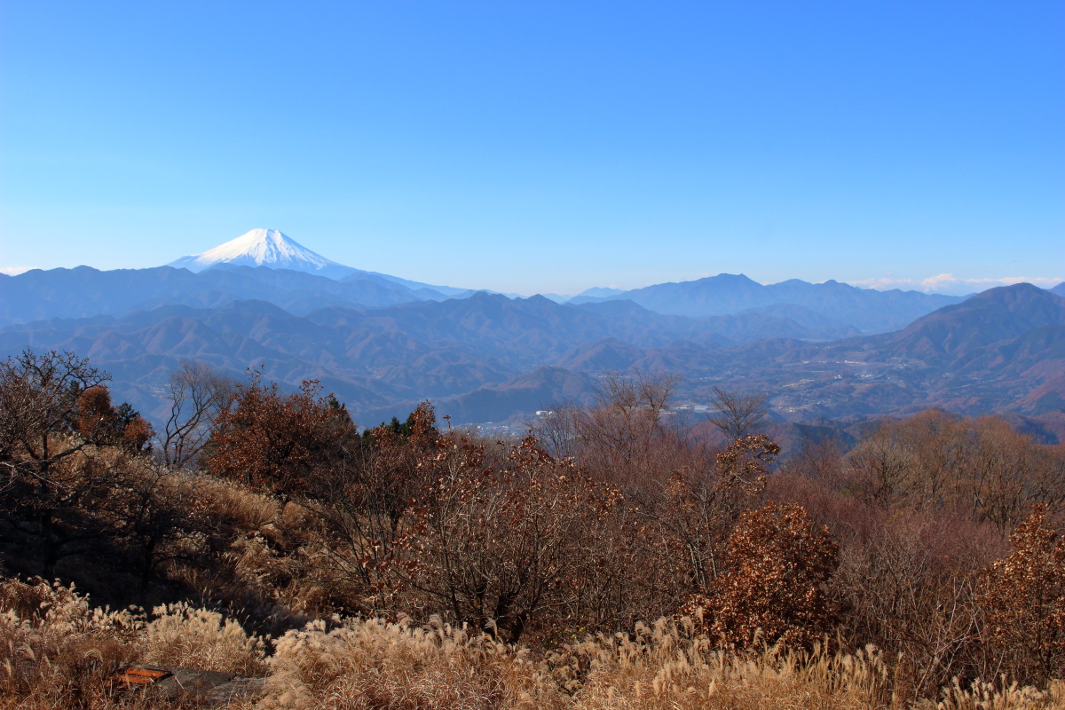 関八州見晴台は、標高が750メートルそこそこながら、「見晴台」という名前のとおり、素晴らしい眺望です。「関八州」が全部見えるかと言われると微妙ではありますが、都心方面はバッチリ見えますし、丹沢や高尾、奥多摩の山々、そして、富士山も見ることができます。