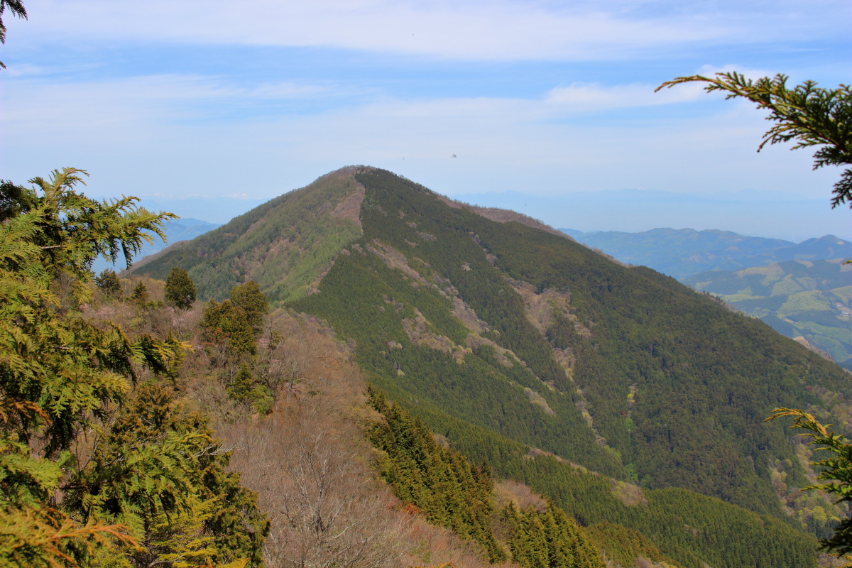 北側が開けているところでは、木々の向こうに、今日の最終的な目的地である武甲山が見えていました。この写真の左側の斜面から登ることになるはずですが、結構な登りですね……