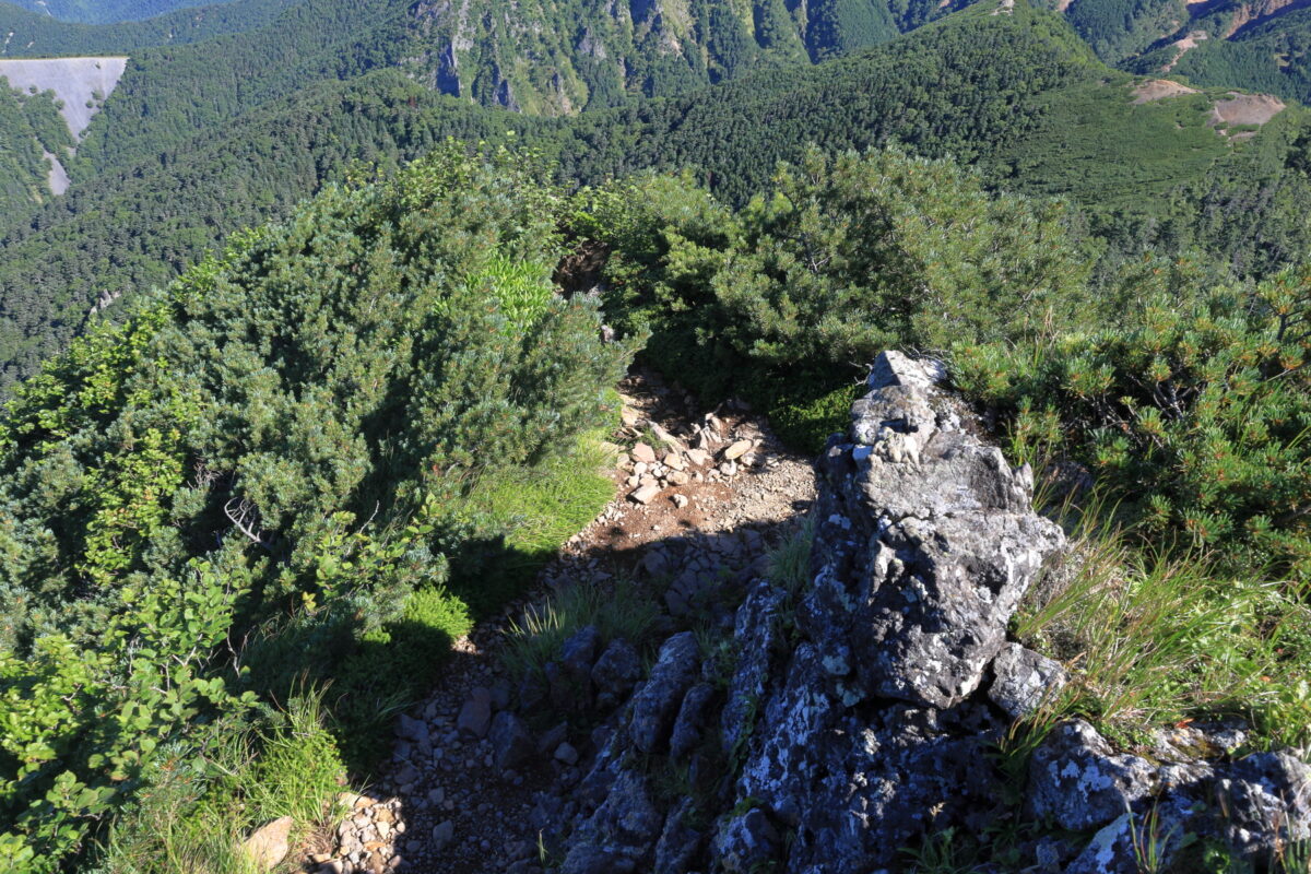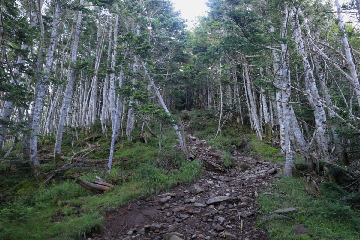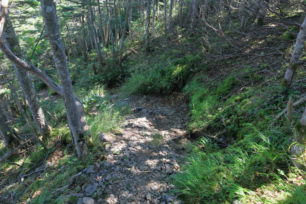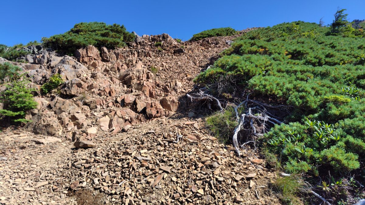 ハイマツに覆われた小道や、この写真のようなガレ気味の道を登っていきます。このあたりは、まだそれほど急ではありません。