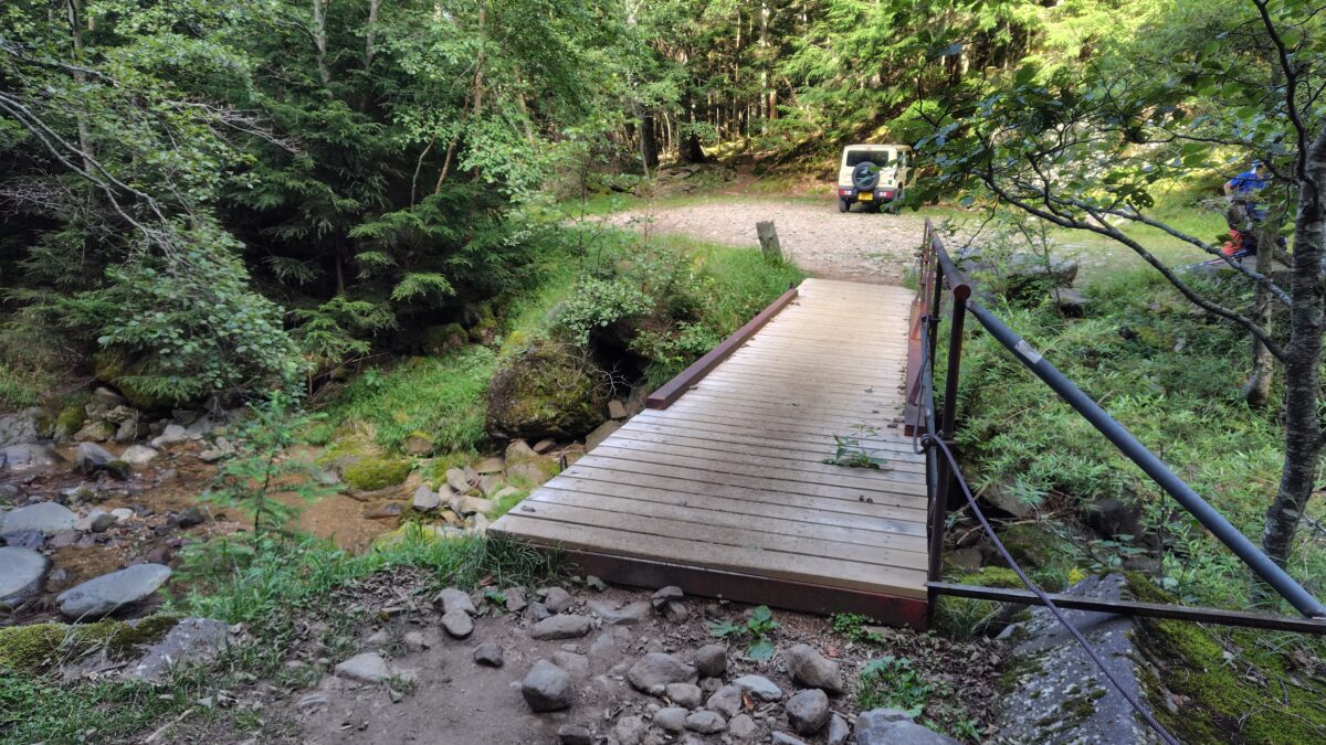 赤岳鉱泉から美濃戸に下る北沢の道は、沢沿いの傾斜の緩いルート。沢の涼し気な音が心地よいですね。途中から何人もの人とすれ違いました。日帰りで赤岳や硫黄岳を目指す方々でしょうか。