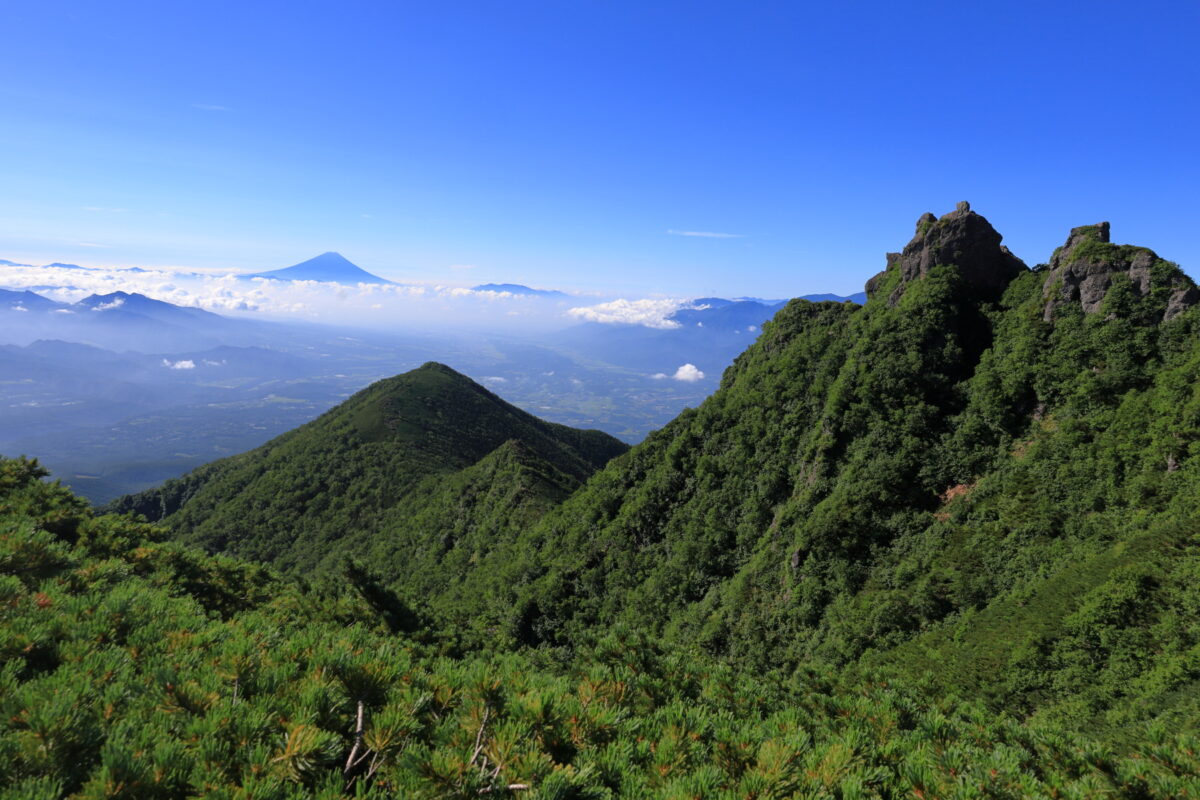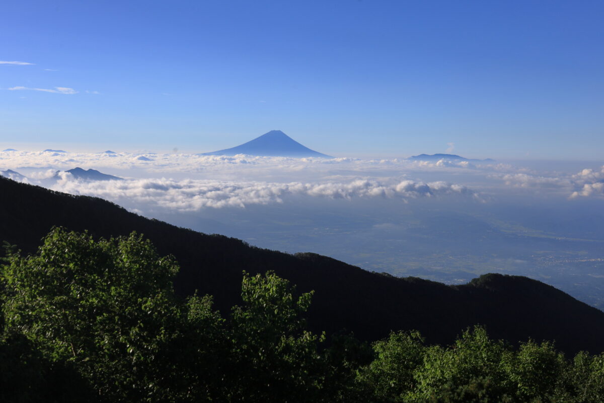 【権現岳】晴天の山頂から雲海に浮かぶ富士山を眺める