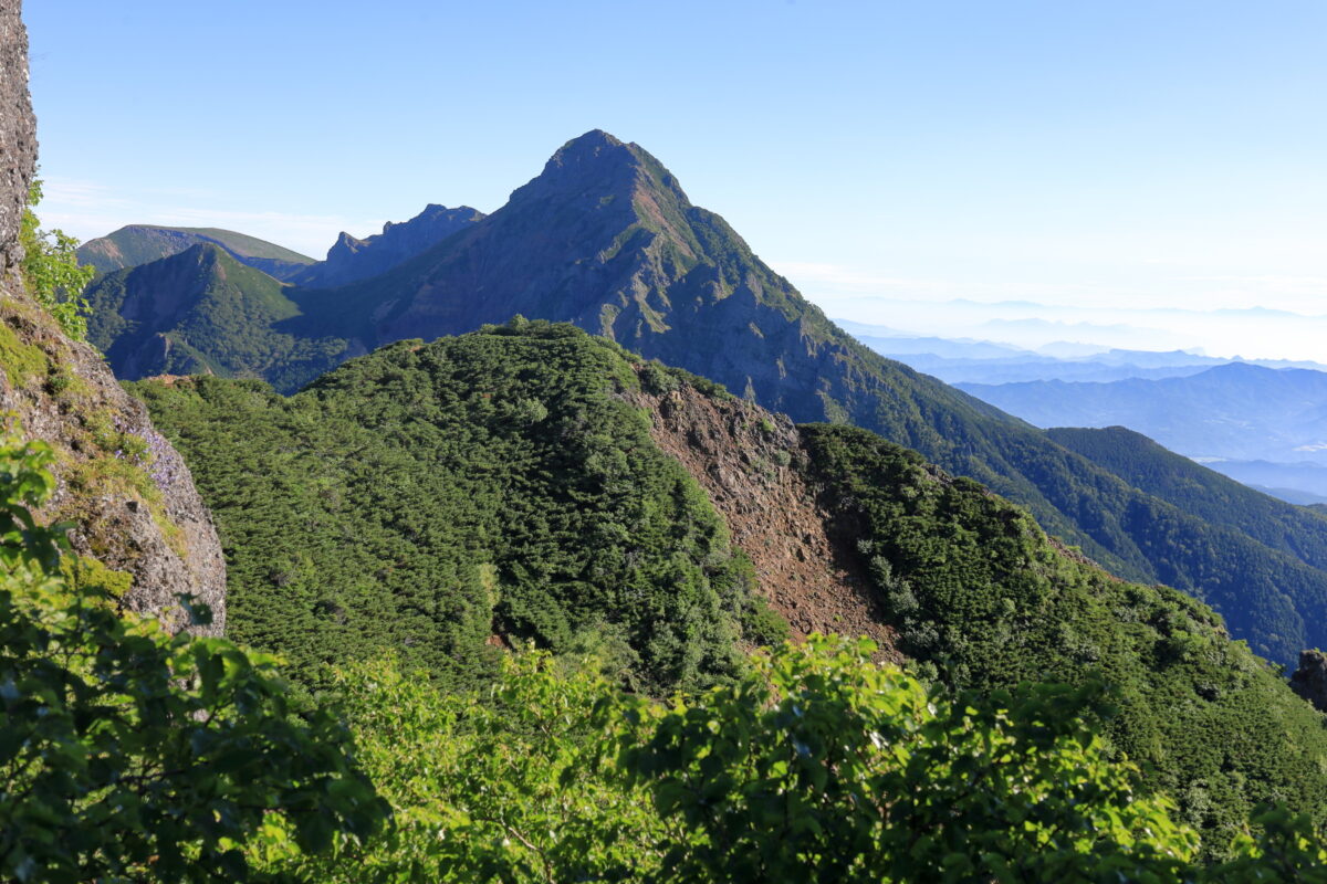 文三郎尾根からの道と合流したあとは、山頂直下の急登へ。ハシゴが続き、なかなかに辛い道ですね……。その分、眺めは抜群に良いです。