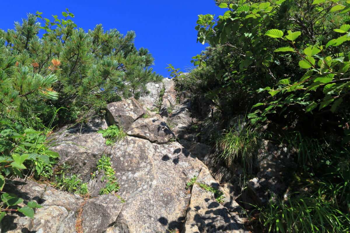 西ギボシと東ギボシの間には、岩場・鎖場がたくさんあります。それほど難易度は高くはありませんが、急登が続くので、頑張りどころです。