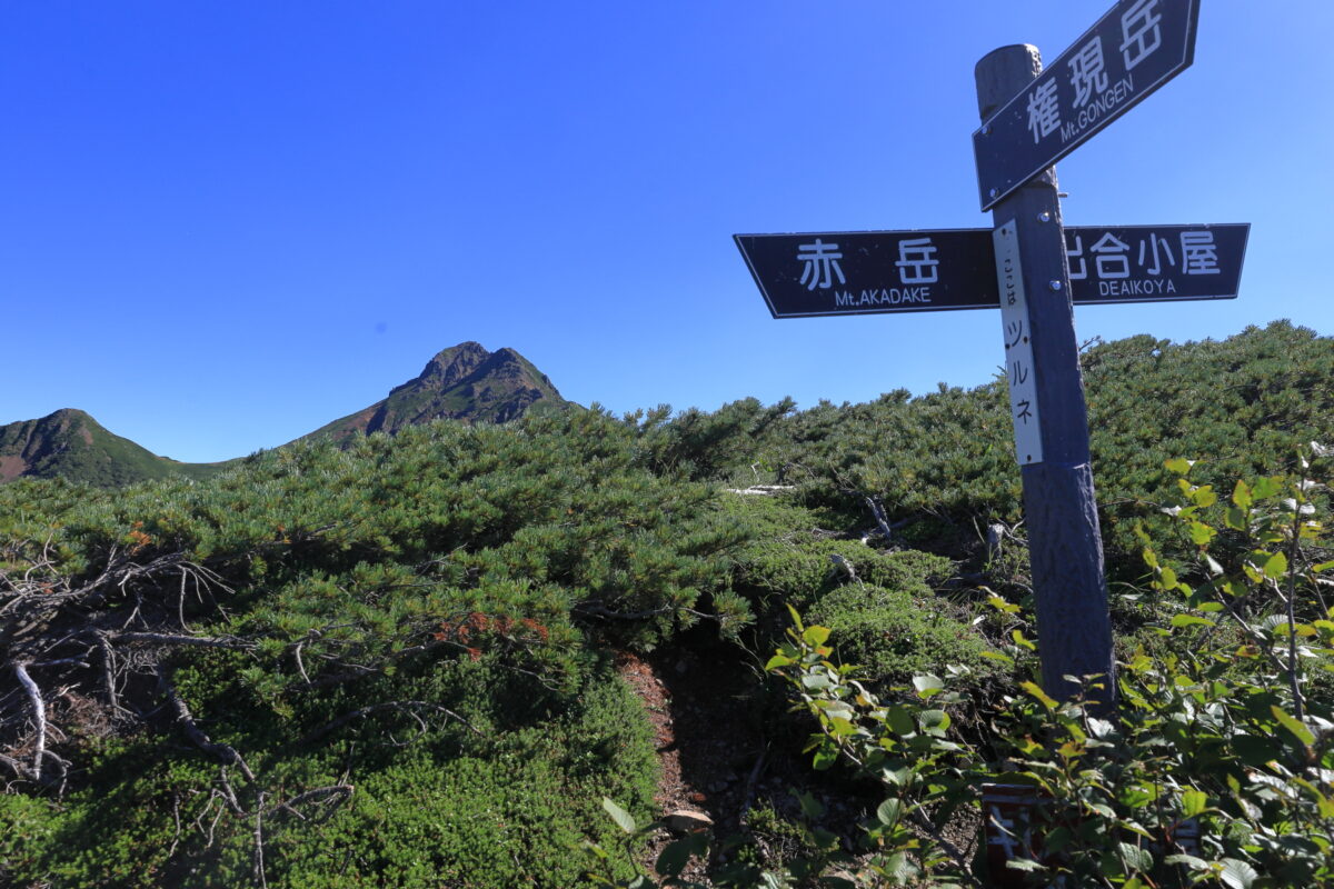 今年も営業していない権現小屋の脇を抜けると、キレット方面との分岐に到着。とりあえず、権現岳まで往復します。