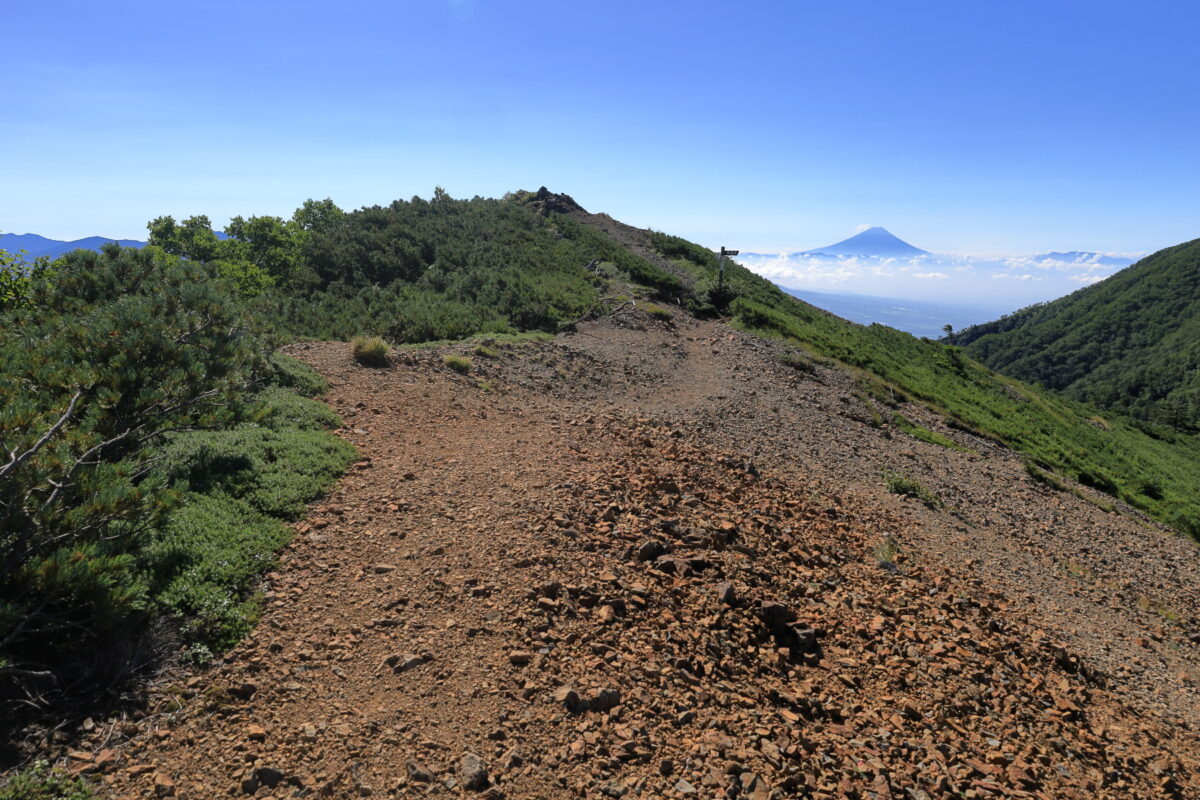 雲海に浮かぶ富士山! 雲海の下は甲府盆地でしょう。見事な眺めです。しばらく景色を楽しんだり、写真を撮ったりしていましたが、今日は先が長いので急ぎましょう。