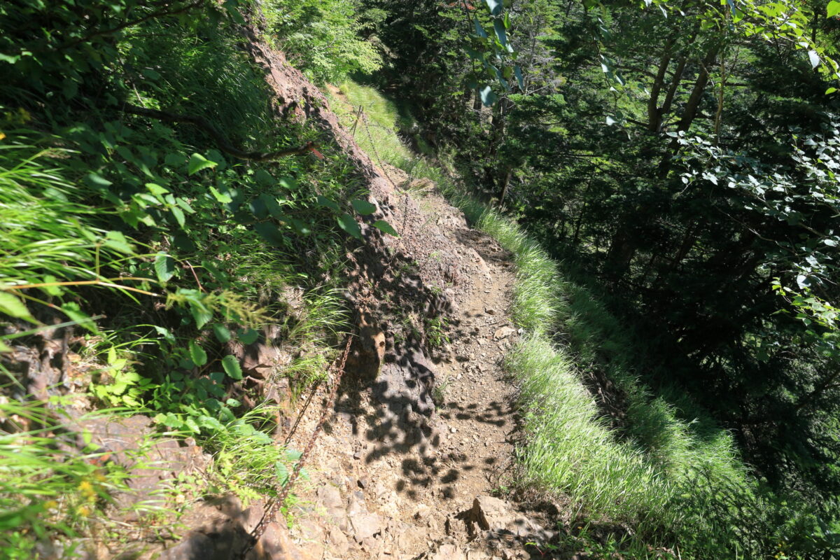 鎖場を下り切ればあとは楽勝!?と思いきや、そういえば、この道はかなりザレ気味で、滑りやすいのでした。何度か滑りそうになりながらも、転ばないように下っていきます。